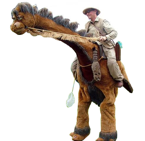 Die Figur ist eine Laufillusion, die in 140stündiger Handarbeit von Jens Pauw - Kostümbauer gefertigt wurde. Der Betrachter sieht eine ca. 3 Meter hohe Illusion mit einem Reiter. Besonderen Wert haben wir auf das kinderfreundliche Aussehen gelegt. Durch die individuelle Schaumstofftechnik wirkt die Figur lebendig und fühlt sich weich an.